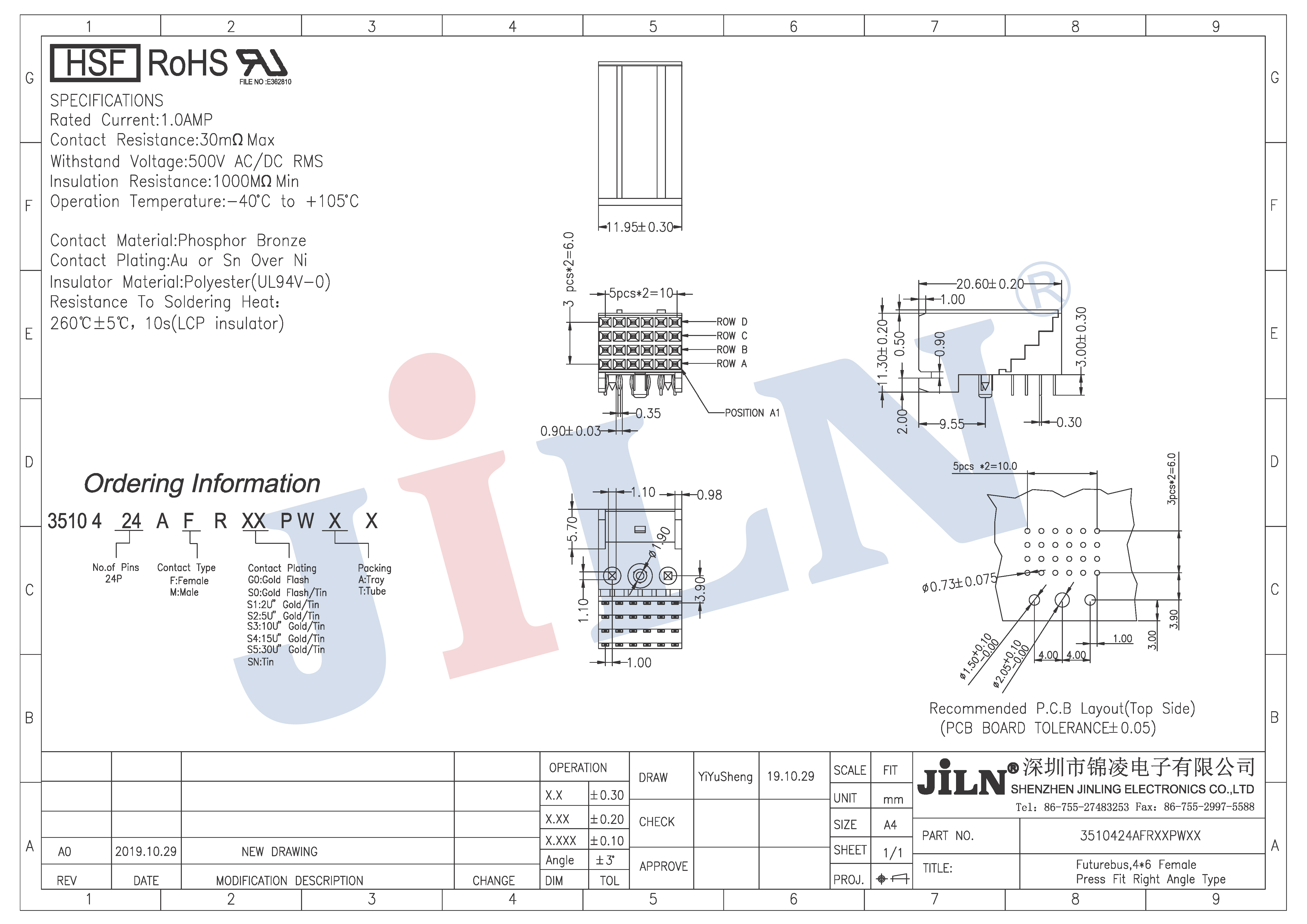 FUTURE BUS/4*6P/90°母座/鱼眼免焊式
