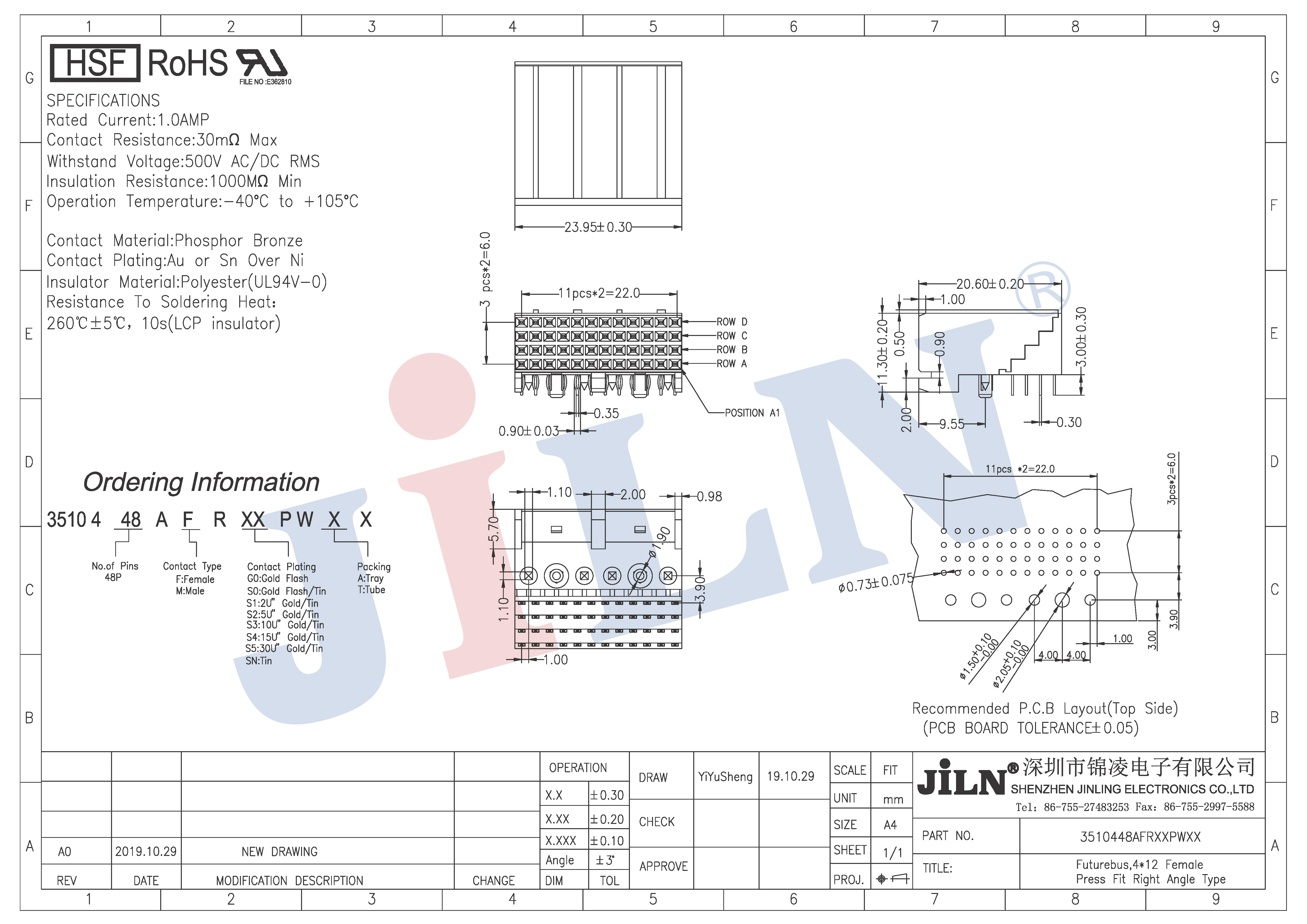 FUTURE BUS/4*12P/90°母座/鱼眼免焊式