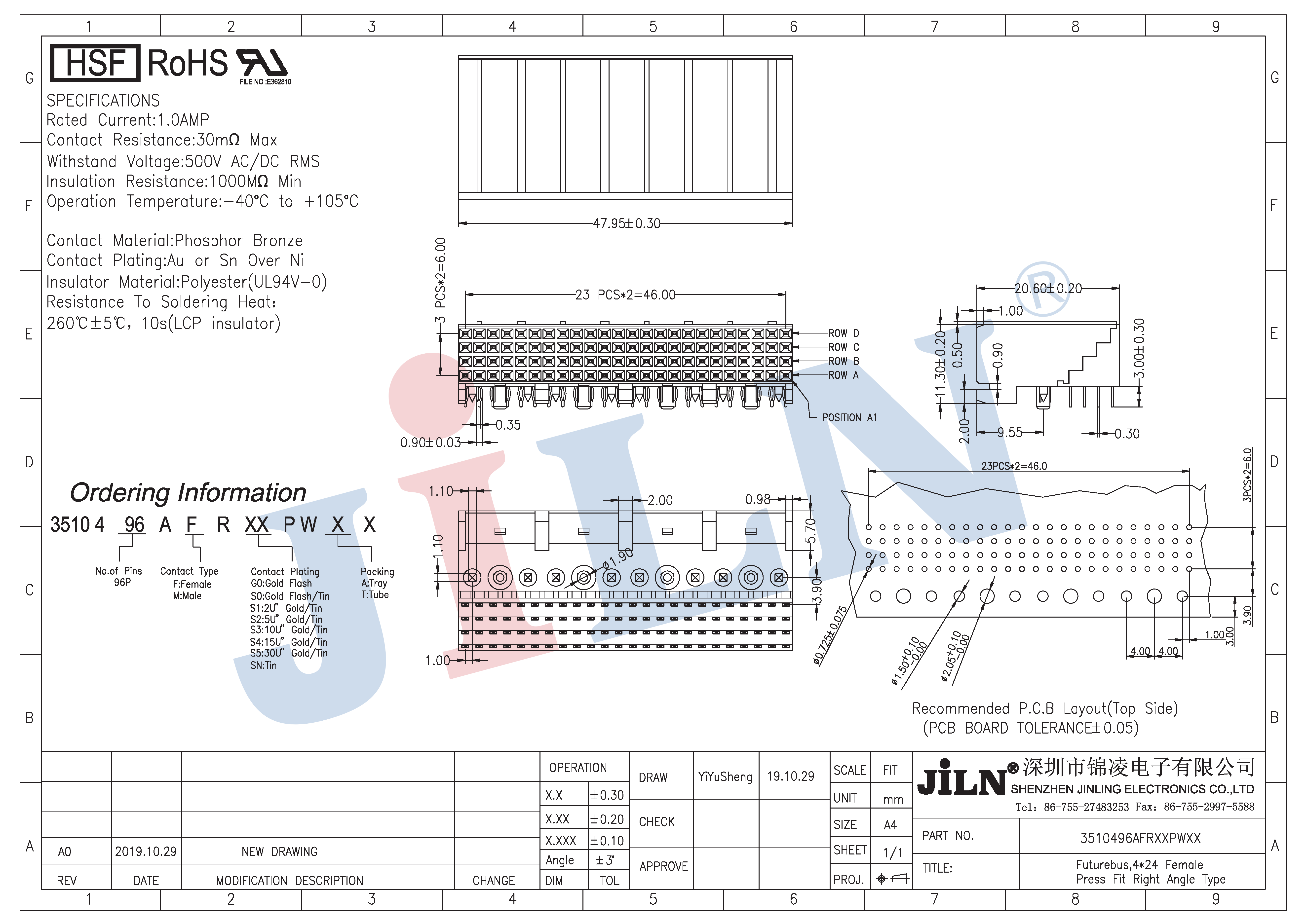FUTURE BUS/4*24P/90°母座/鱼眼免焊式