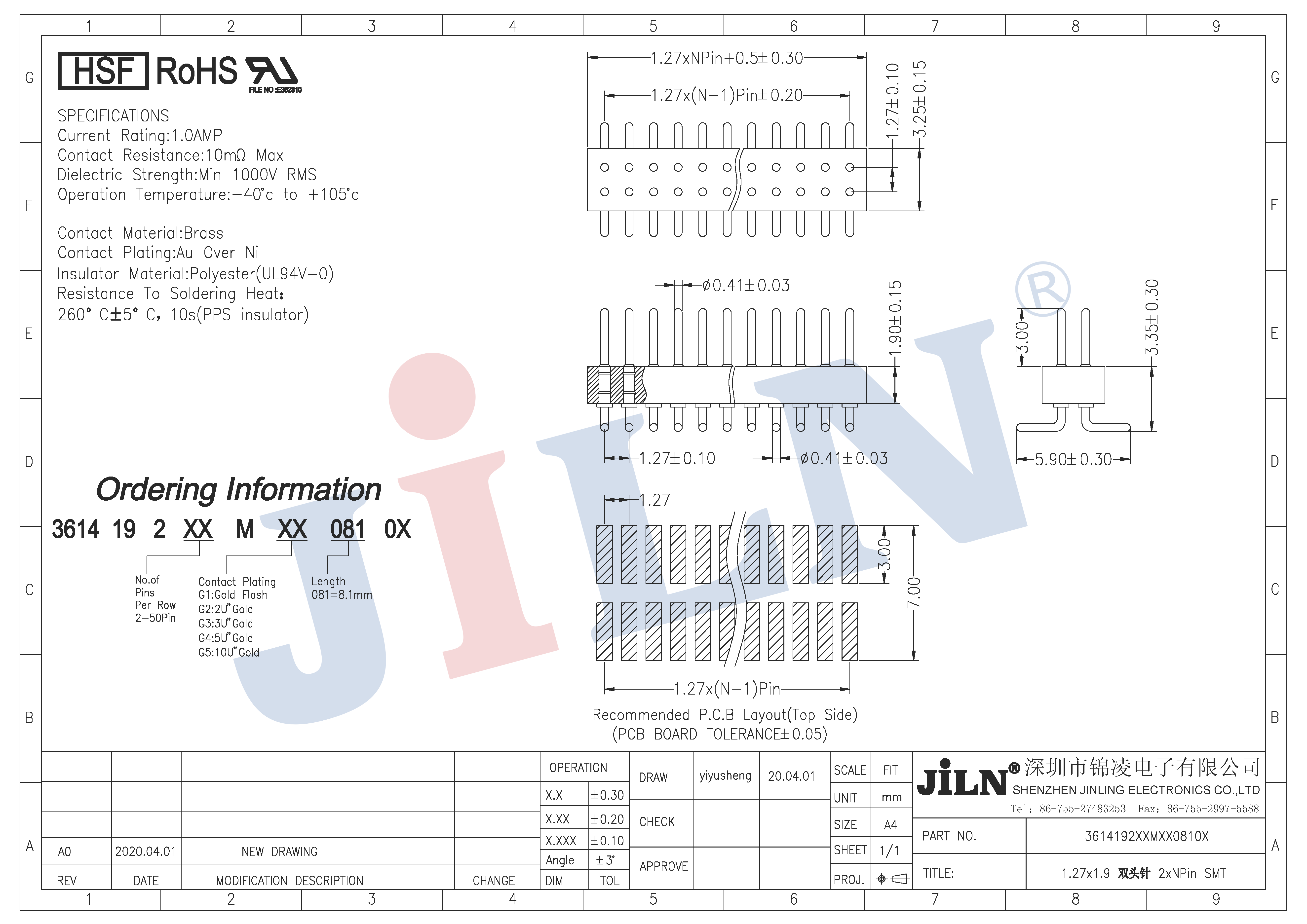 1.27mm圆孔双头针/H1.9/双排SMT/L8.1