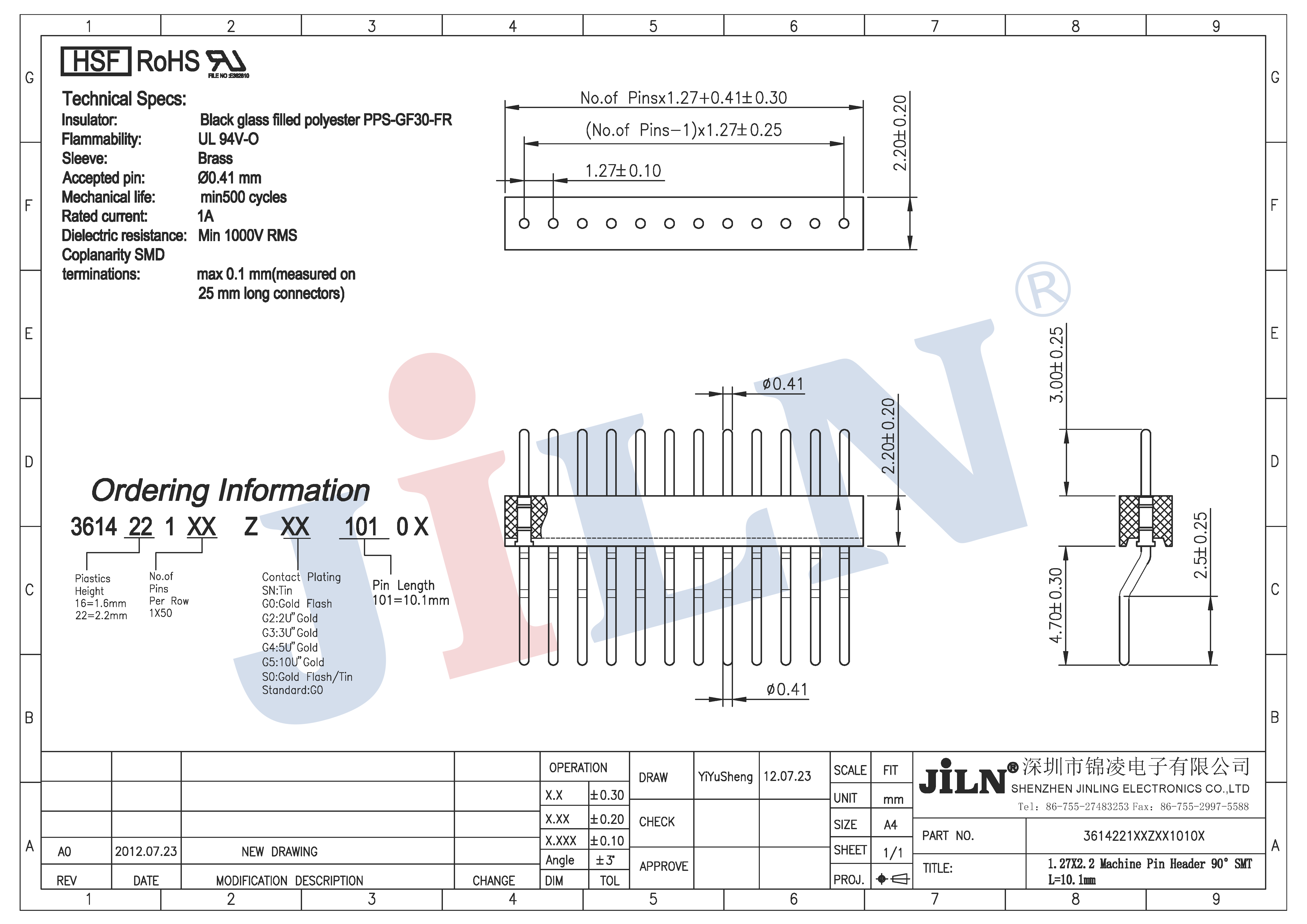 1.27mm圆孔双头针/H2.2/单排卧贴/L10.1