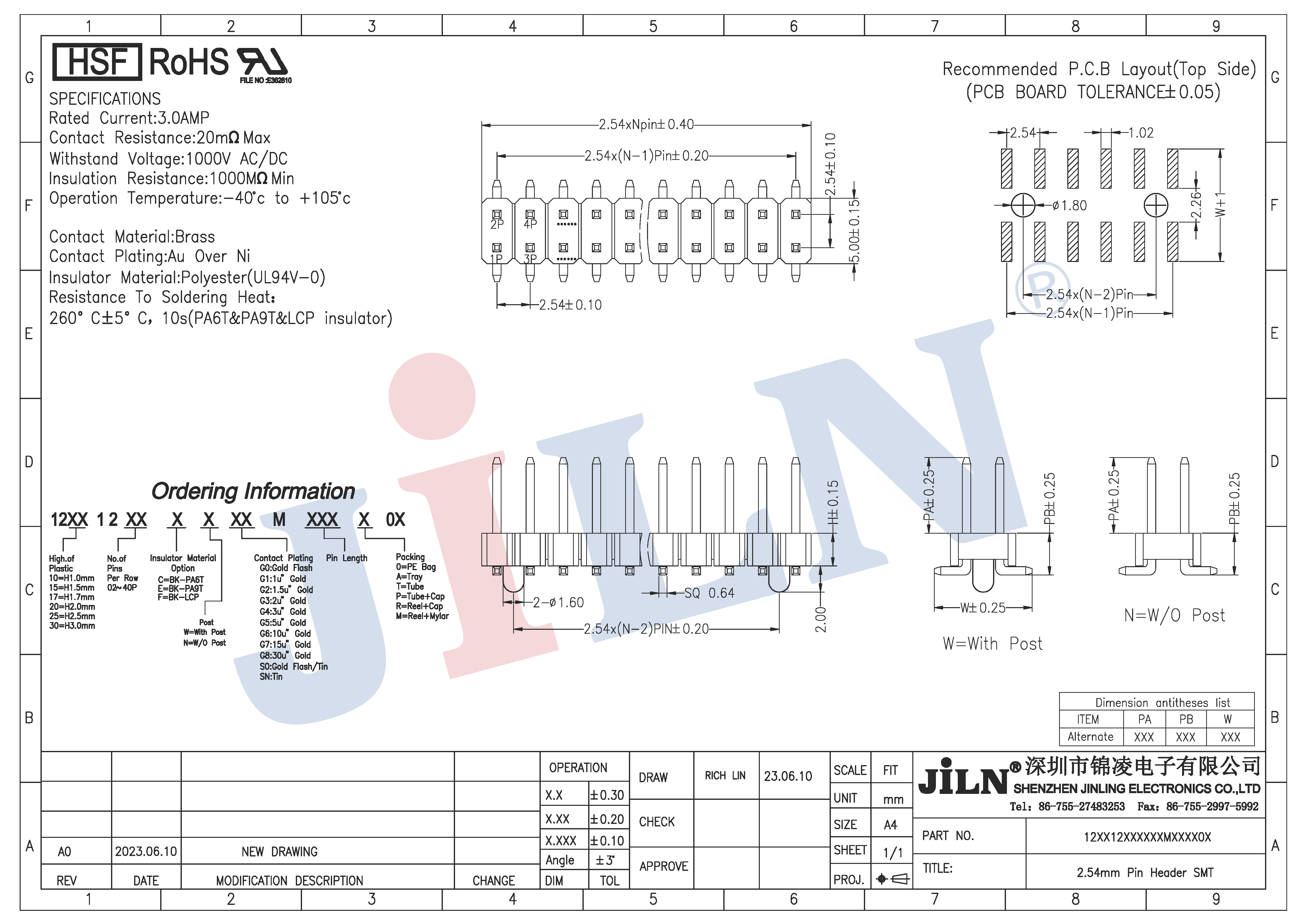 2.54mm排针/SMT/双排/单塑/H1.0/H1.5/H1.7/H2.0/H2.5/H3.0