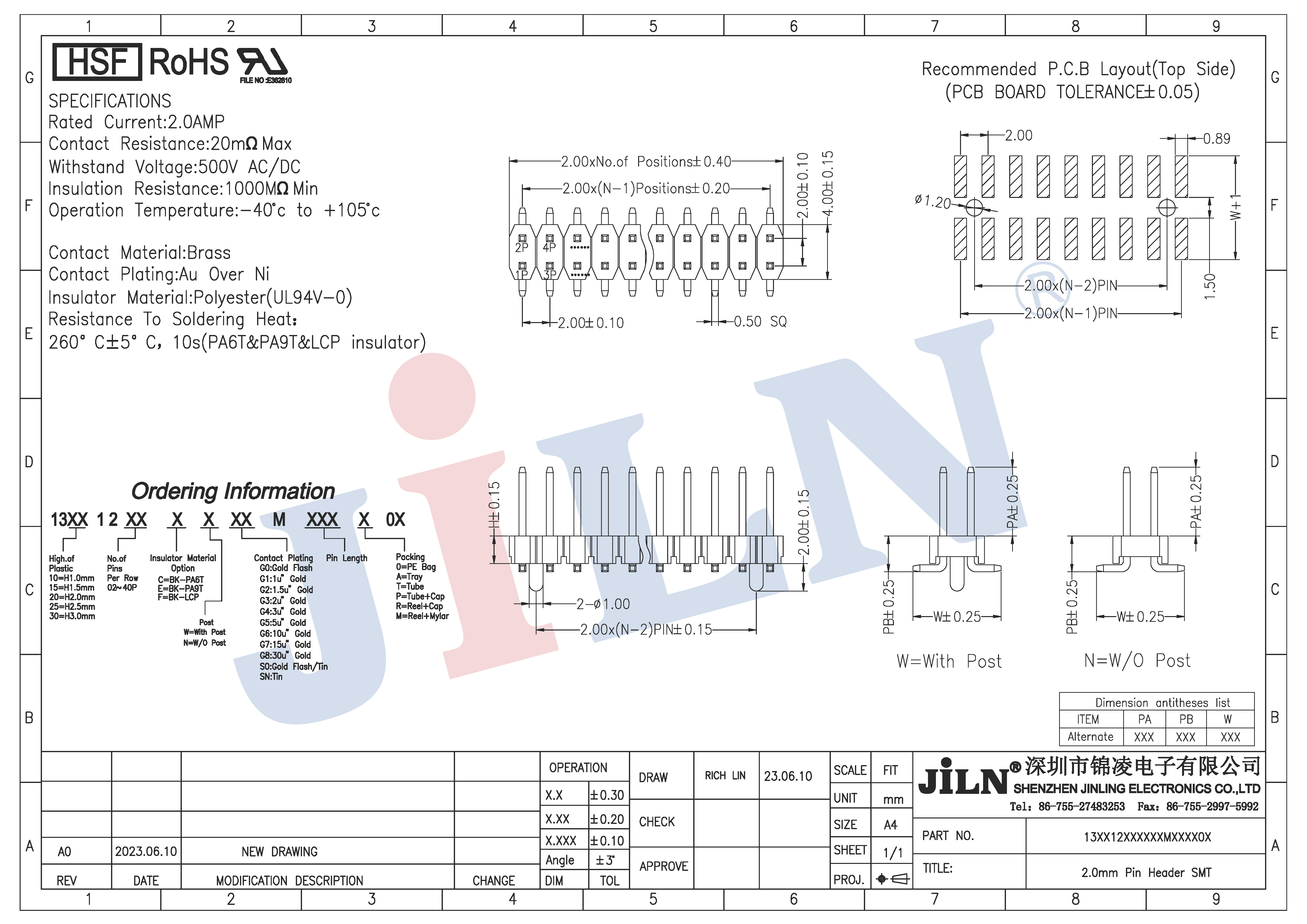 2.0mm排针/SMT/双排/单塑/H1.0/H1.5/H2.0/H2.5/H3.0