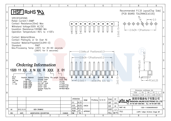 1320-11XXXNXXRXXXX01,2.0mm,单排,通孔焊接,90°