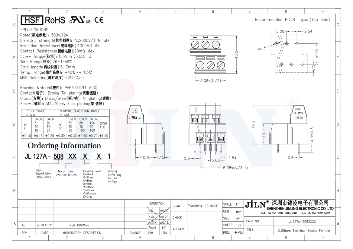 | 料号 | JL127A-508XXXX1 一字螺丝 | ||