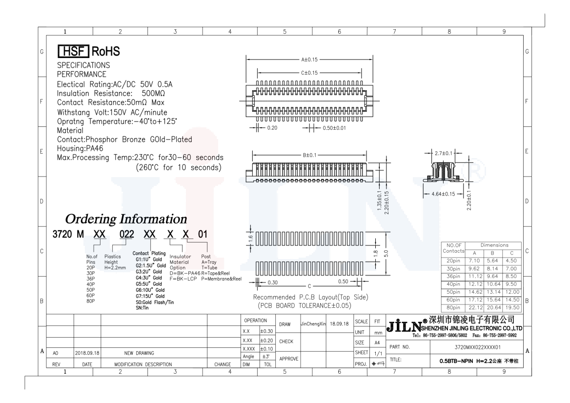 3720-MXX022XXXX01,0.5mm,公座,贴片式,SMT